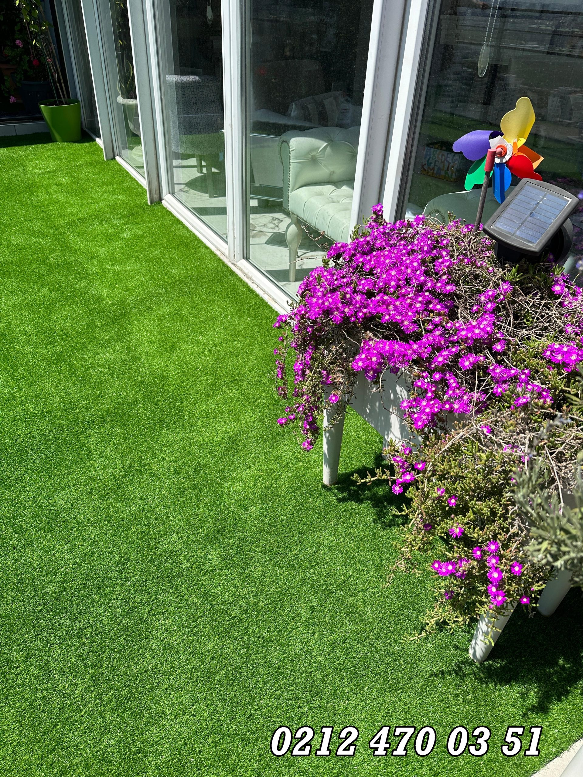Doğal çim gibi görünür, bakım istemez, yıl boyunca yeşil kalır.